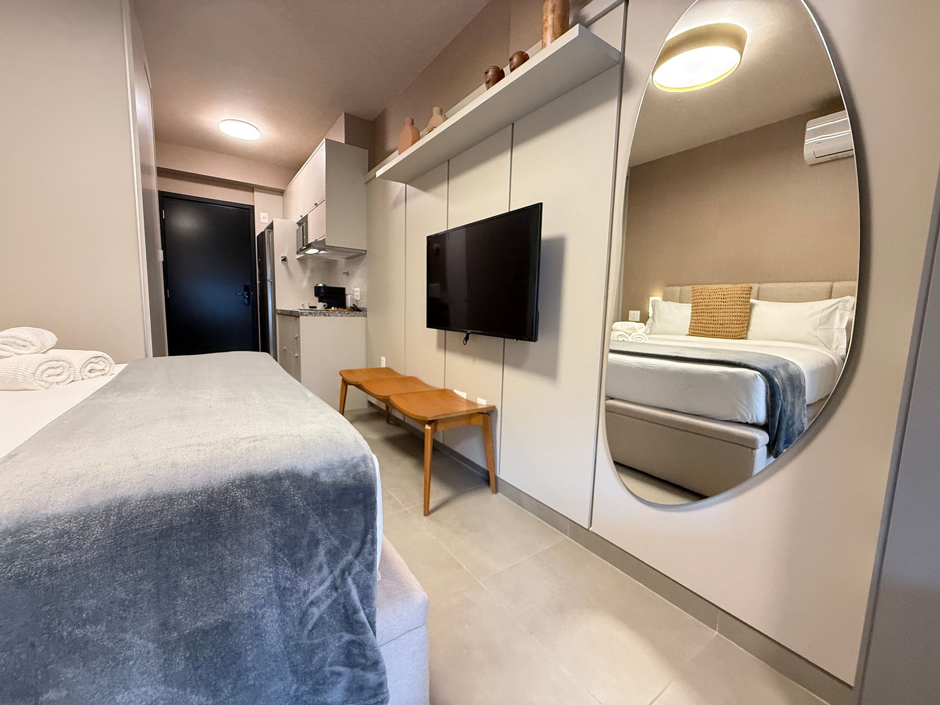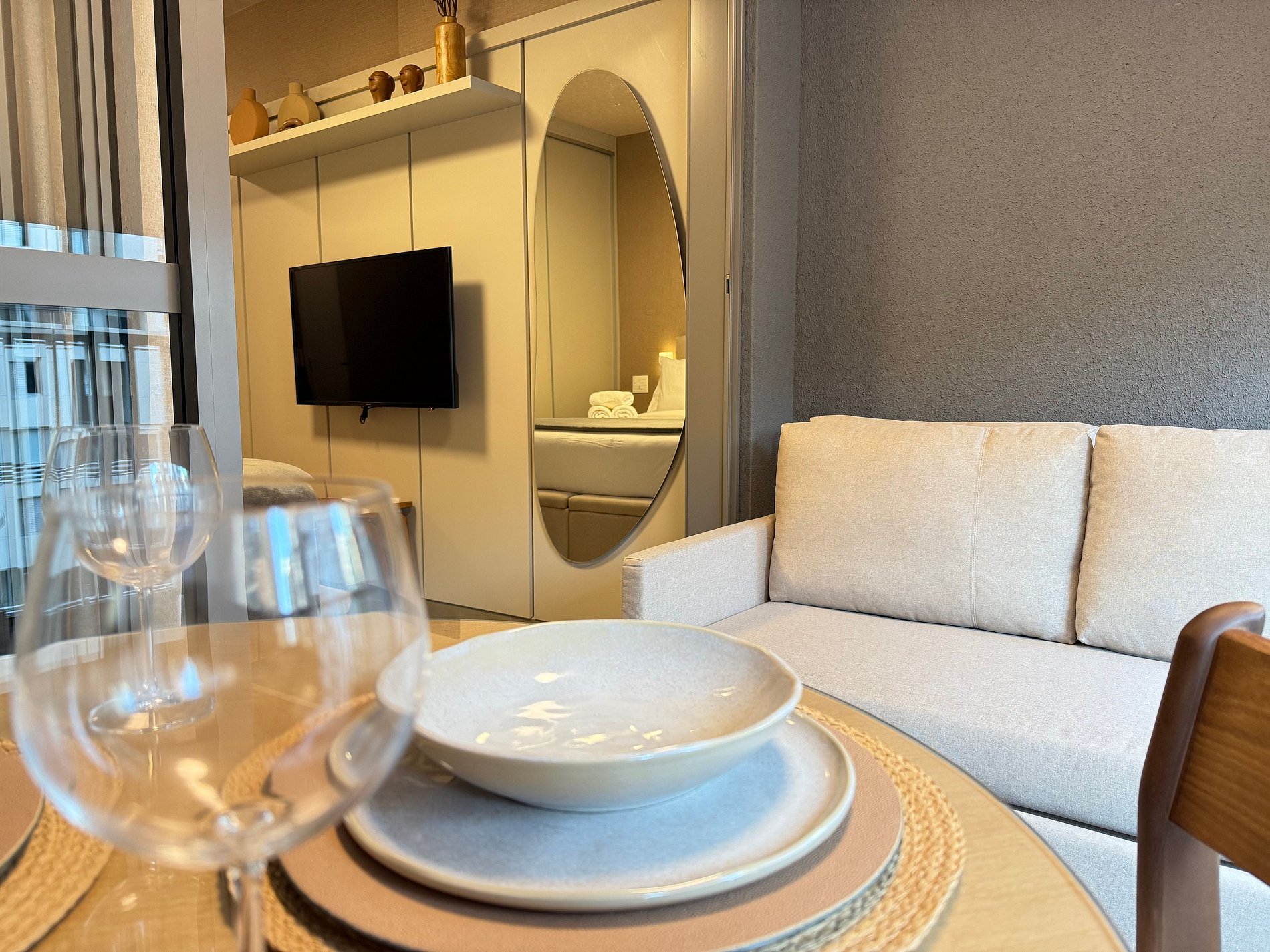 Stay in a modern, functional and well-located studio in Moema, one of São Paulo’s most desirable neighborhoods. This 27 sqm studio is located in the On Jurupis building, just steps from Moema subway station, Ibirapuera Shopping Mall, and a wide range of restaurants, cafés and grocery stores. Ideal for business or leisure stays, offering comfort, convenience and easy mobility.