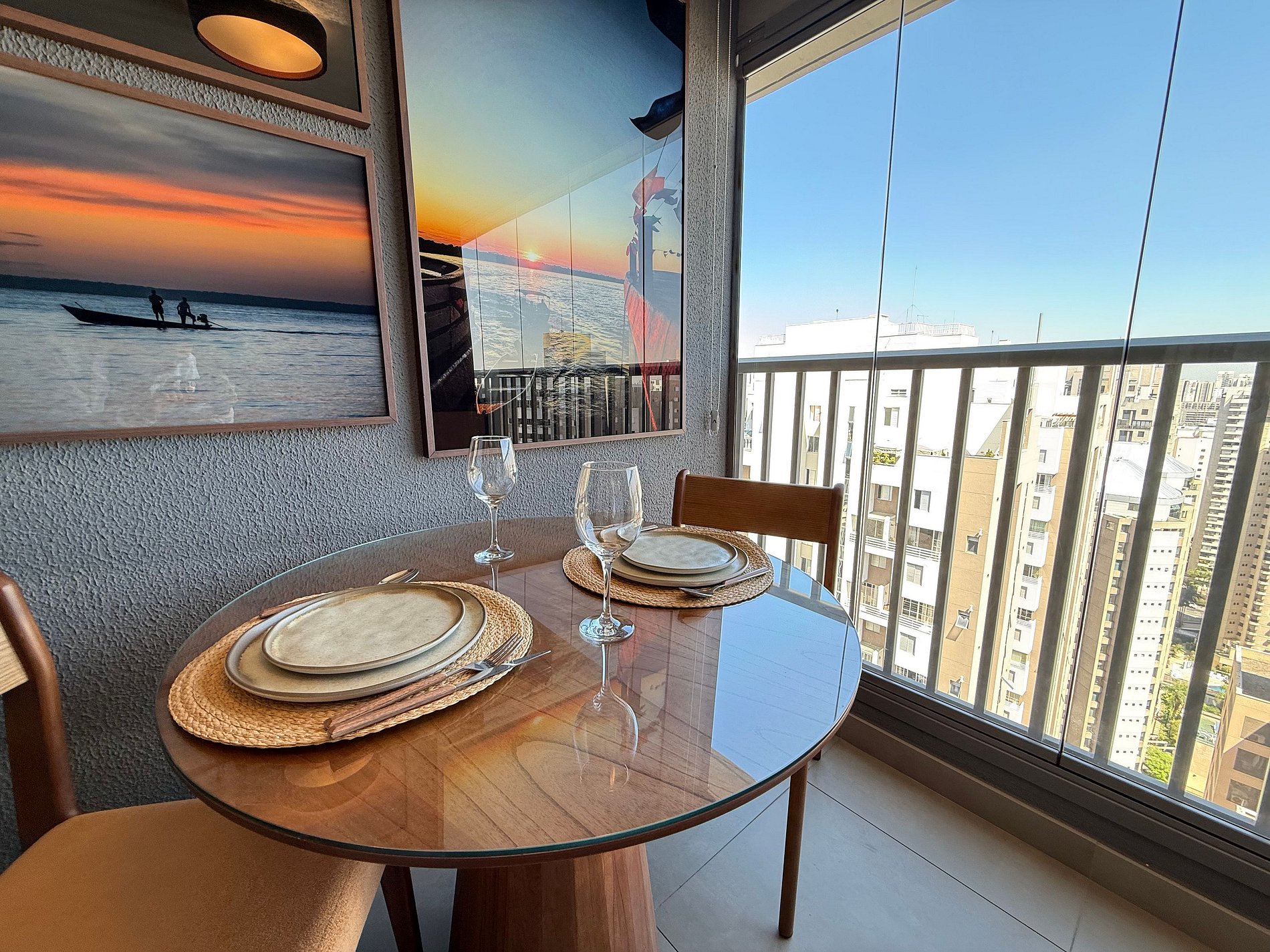 Os hóspedes encontrarão uma cama queen com enxoval de hotelaria premium, ar-condicionado, Wi-Fi de alta velocidade e uma cozinha compacta totalmente equipada com geladeira, micro-ondas, cafeteira, chaleira elétrica e sanduicheira. A varanda ampla, com mesa de jantar e sofá, funciona como uma extensão aconchegante do studio, perfeita para momentos de descanso ou refeições com vista para a cidade.