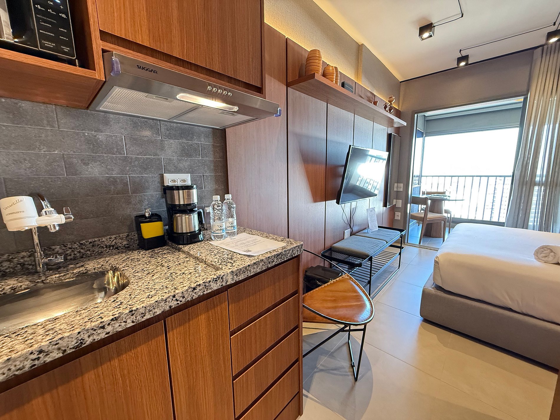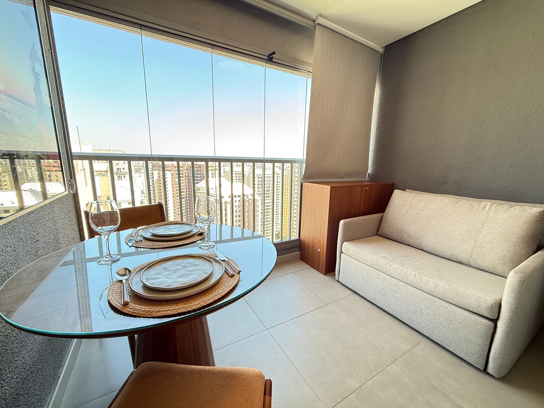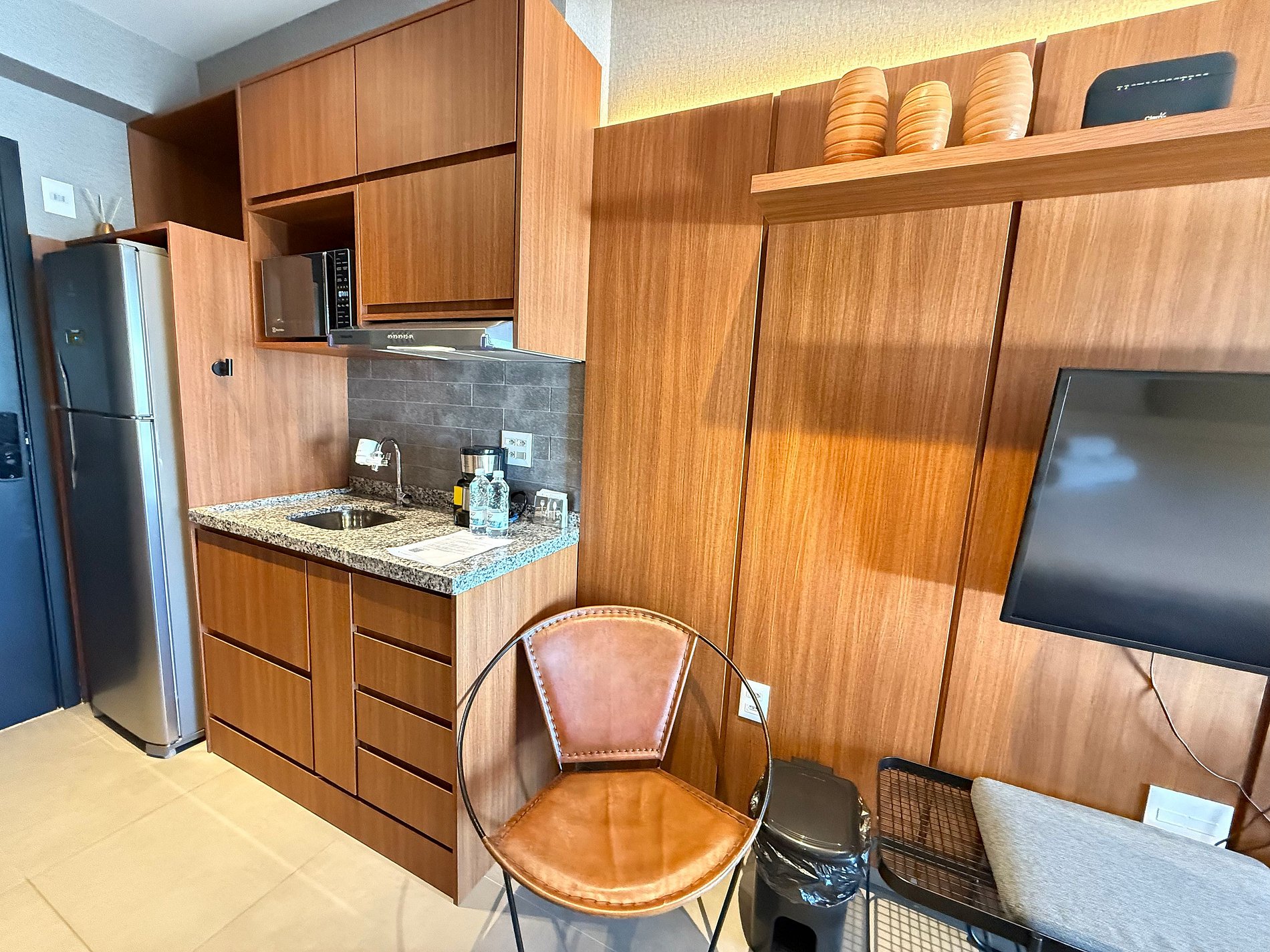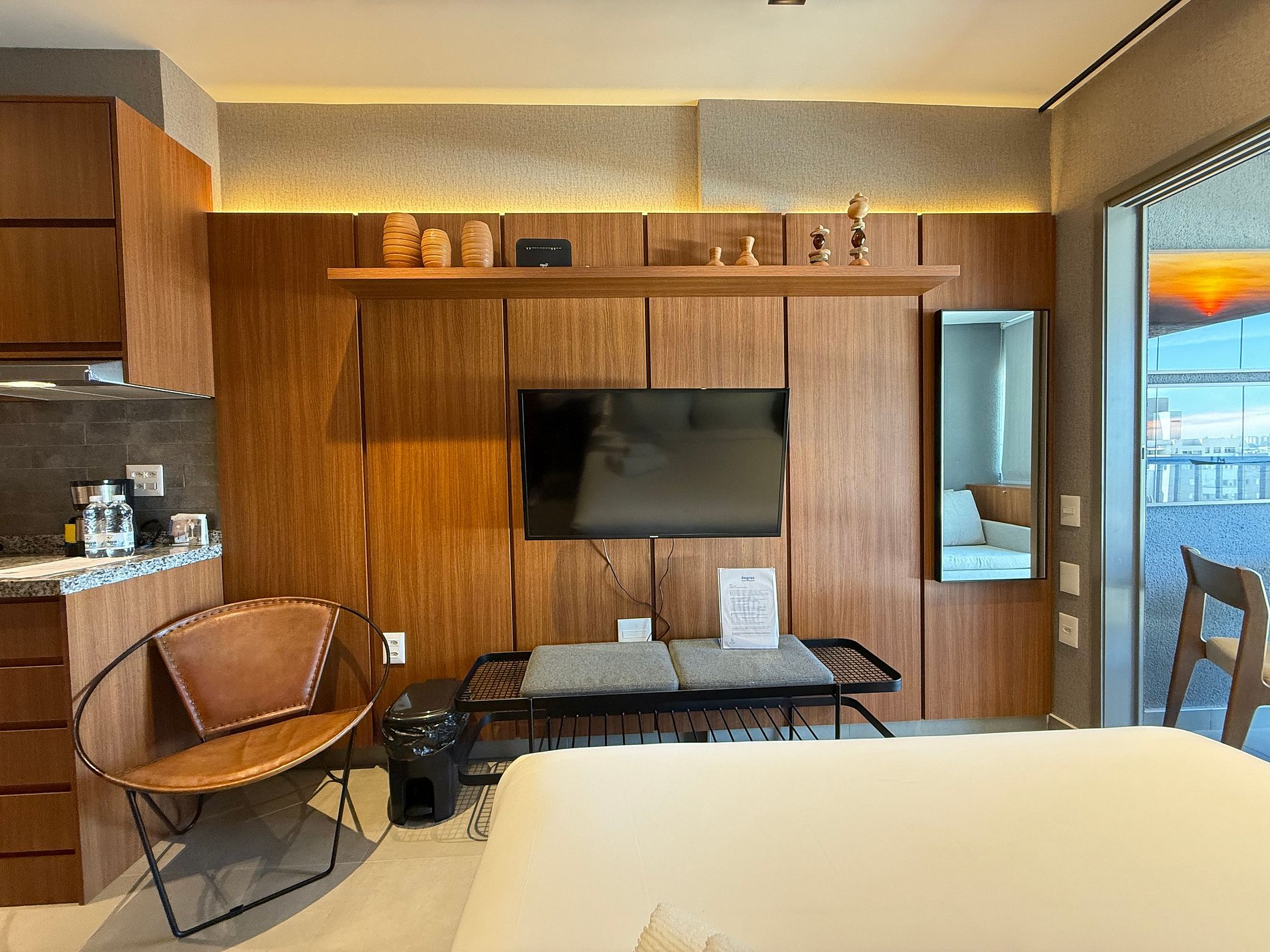 Stay in a modern, functional and well-located studio in Moema, one of São Paulo’s most desirable neighborhoods. This 27 sqm studio is located in the On Jurupis building, just steps from Moema subway station, Ibirapuera Shopping Mall, and a wide range of restaurants, cafés and grocery stores. Ideal for business or leisure stays, offering comfort, convenience and easy mobility.