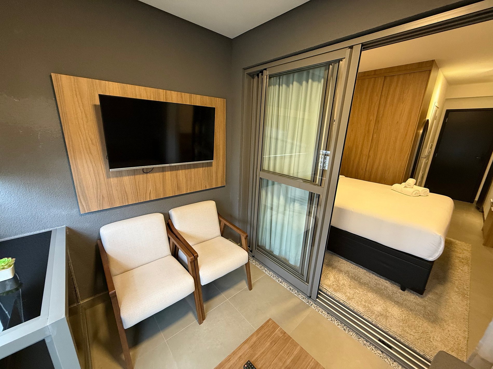 Stay in a modern, functional and well-located studio in Moema, one of São Paulo’s most desirable neighborhoods. This 27 sqm studio is located in the On Jurupis building, just steps from Moema subway station, Ibirapuera Shopping Mall, and a wide range of restaurants, cafés and grocery stores. Ideal for business or leisure stays, offering comfort, convenience and easy mobility.