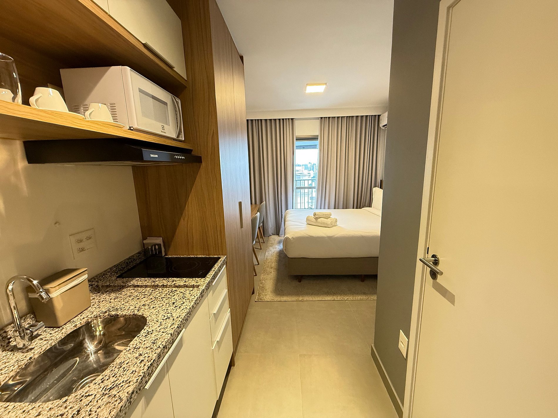 Stay in a modern, functional and well-located studio in Moema, one of São Paulo’s most desirable neighborhoods. This 27 sqm studio is located in the On Jurupis building, just steps from Moema subway station, Ibirapuera Shopping Mall, and a wide range of restaurants, cafés and grocery stores. Ideal for business or leisure stays, offering comfort, convenience and easy mobility.