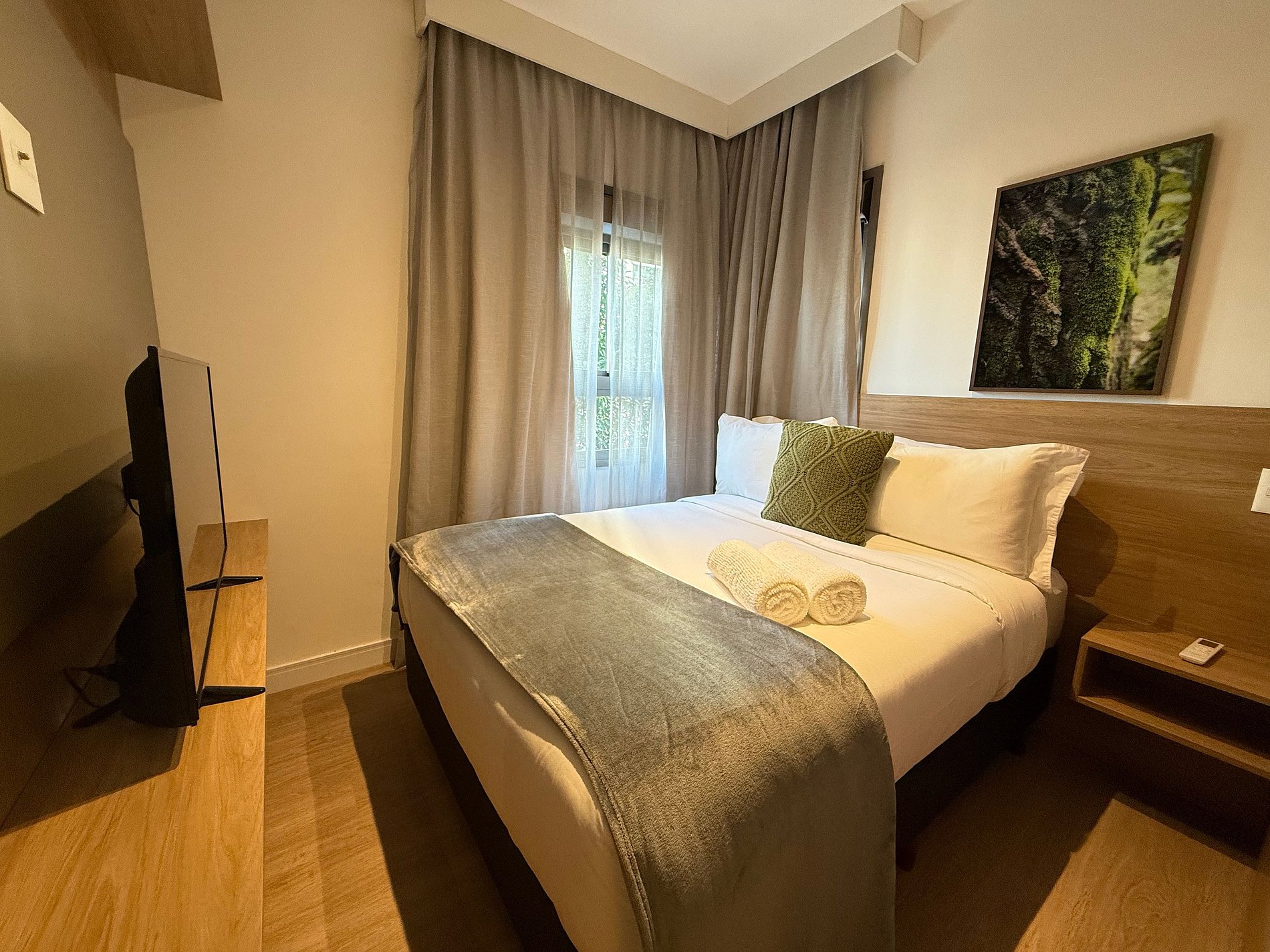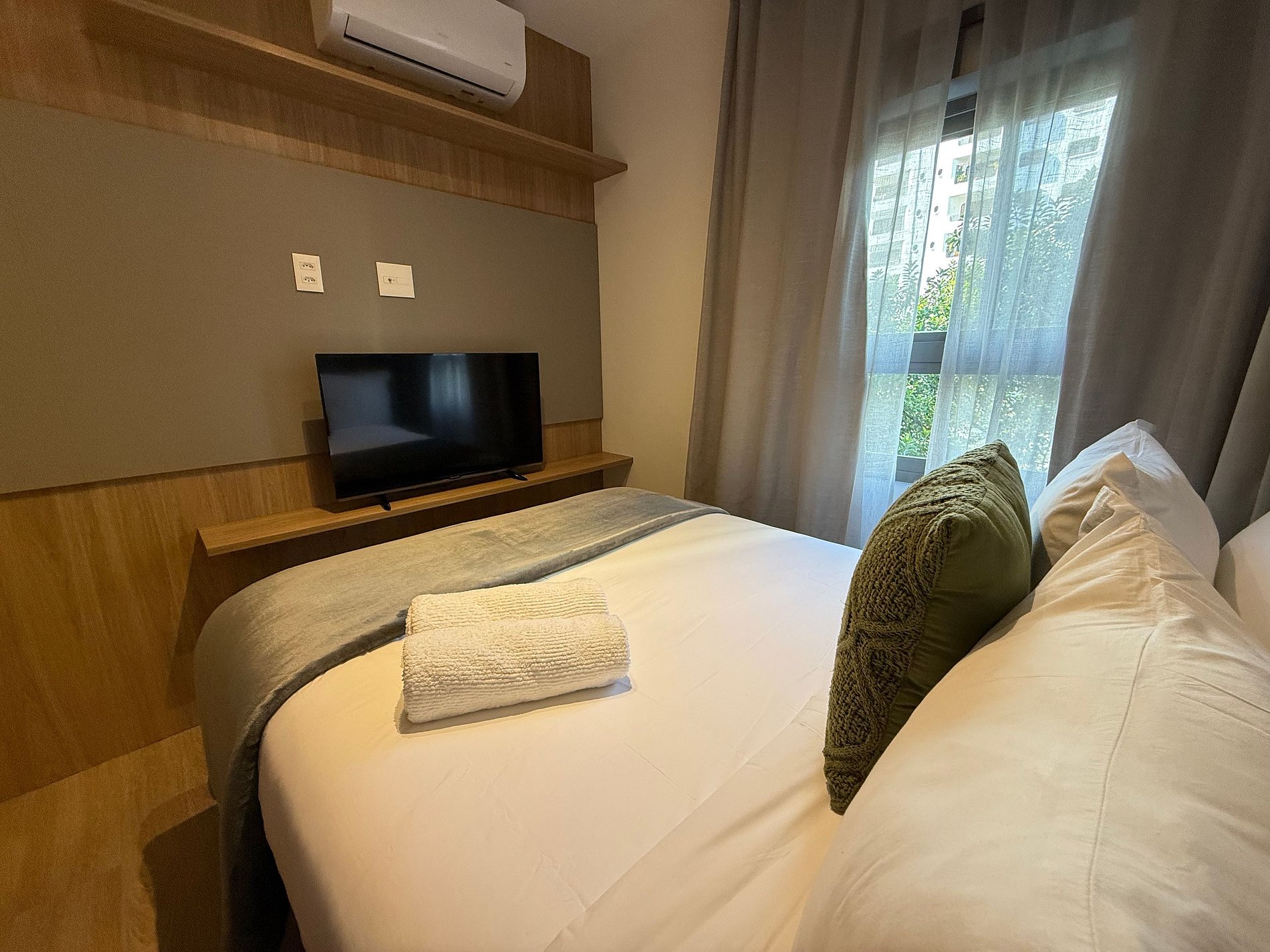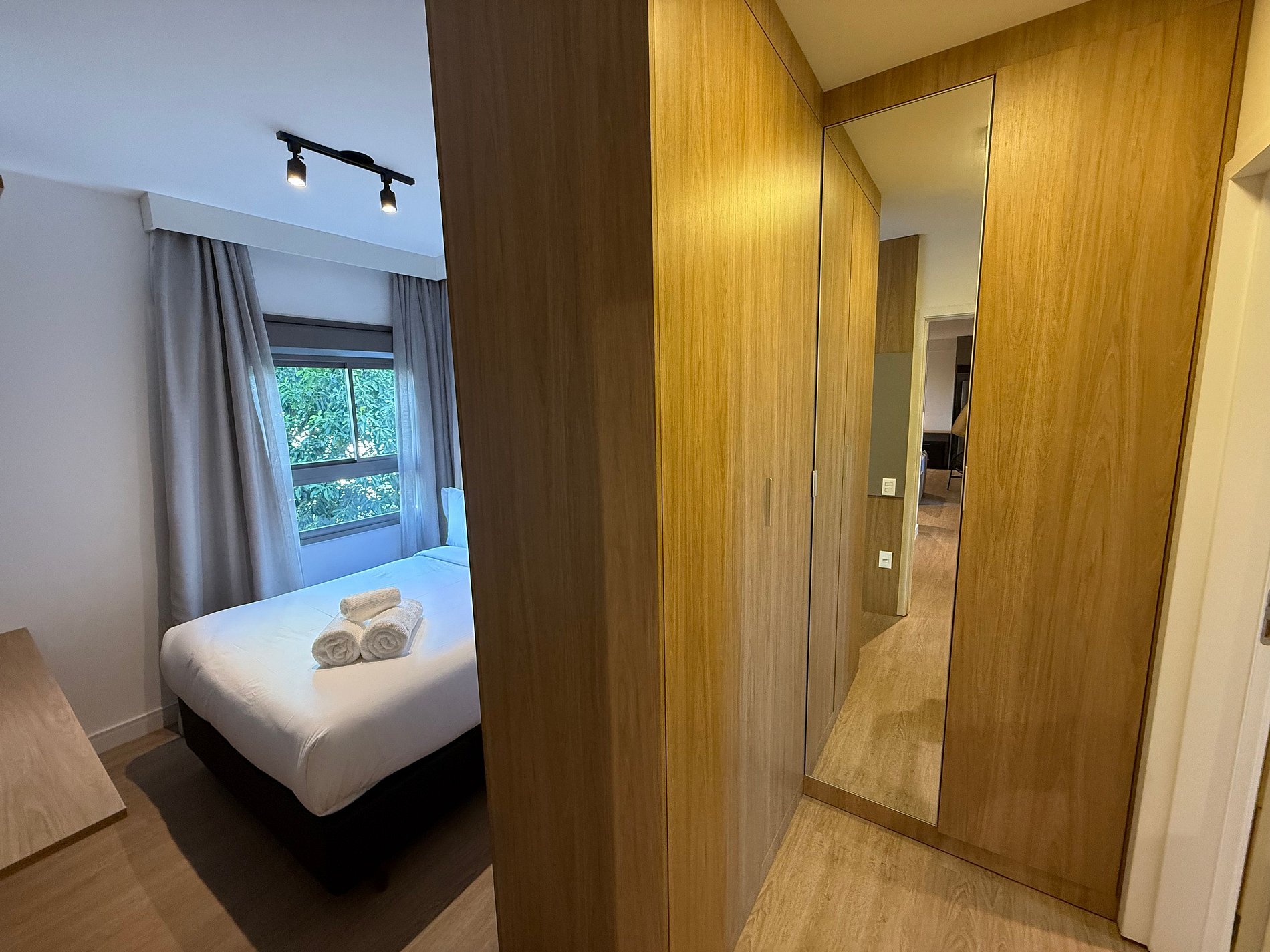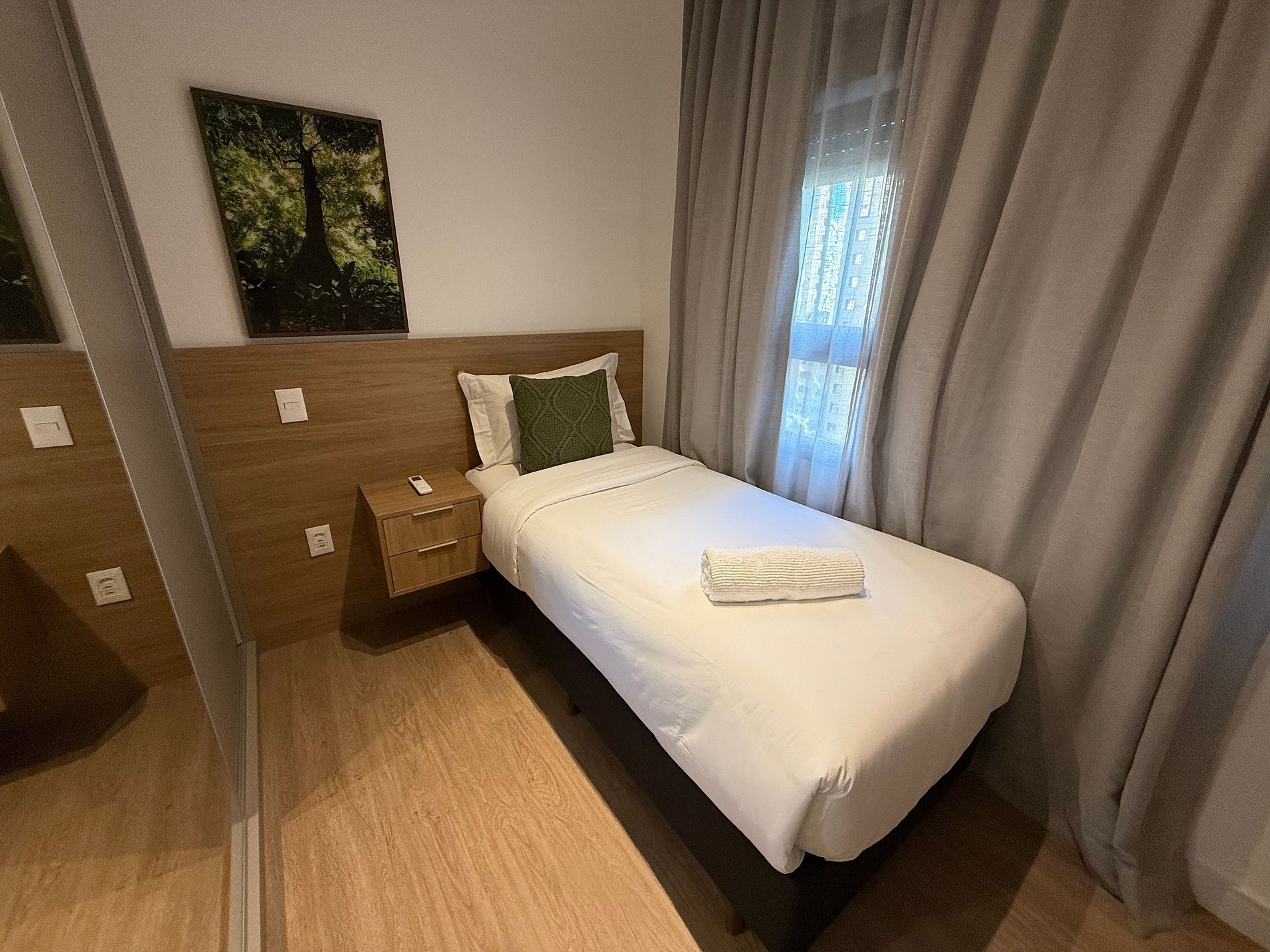 O ambiente é silencioso, climatizado e cuidadosamente limpo, ideal para quem busca descanso, produtividade ou uma estadia de curta e média duração em Moema.